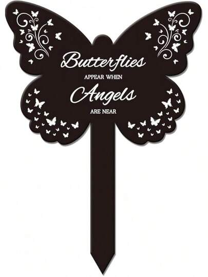 Butterfly Shaped Tree Garden Memorial Plaque  - Waterproof Acrylic Remembrance For Cemetery, Yard And Grave - Angles - View 1