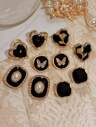 5pcs/Set Retro Square & Heart Shape Dripping Oil Pearl Earrings, Elegant Geometric Earrings, Fashion High-End Earring Set Valentines,Mom,Mother,Mother's Day,Gift