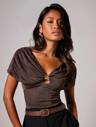 COSMINA Women's Elegant Commute Solid Color Wrap Flared Sleeve Blouse