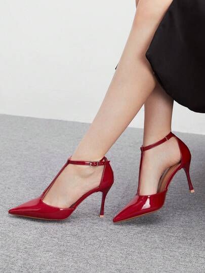 CUCCOO BIZCHIC Women's Fashion Wine Red T-Strap Pointed Toe High Heel Pumps, Suitable For Commuting, Dating, Party, Holiday, Wedding Spring Shoes Spring Break Easter - Burgundy - View 1
