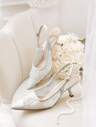 CUCCOO HITCHD Women's Embroidered Lace Beaded Floral Pointed Toe Stiletto Heel Mid-Heel Elegant Glamorous Sweet Romantic White Mesh High Heel Pumps, Bridal Shoes, Formal Dress Shoes, Fashion Party Wear, Suitable For Wedding, Christmas, Thanksgiving, Birthday, Valentine's Day