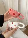 1pc 200ml/420ml Heart-Shaped Ceramic Mug, Simple & Elegant Circular Pattern Cup, Suitable For Cafe Latte, Milk, Yogurt, Oatmeal, Afternoon Tea, Couple Cup, Gift Back To School