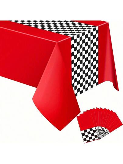 Car Theme Birthday Party Supplies, Race Car Party Decorations, Road And Race Track Tablecloth, 54x108 Inches (Bright Style) - Red - View 1