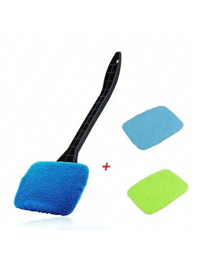 Car Windshield Cleaning Brush Kit Car Window Wiper Home Glass Defogging Dust Towel With Long Handle Cleaner Brush Washing Tool - Black - View 1