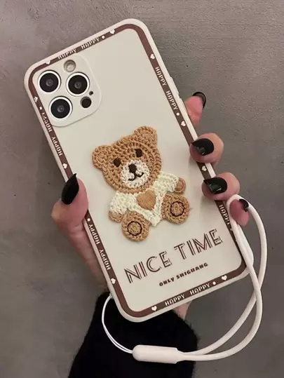 Cartoon Bear Phone Case With Lanyard Compatible With iPhone15/15Plus/15Pro/15Promax - Multicolor - View 1