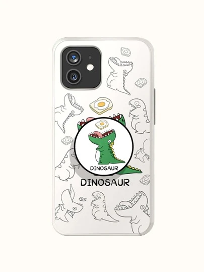 Cartoon Dinosaur Print Phone Case With Phone Holder - Multicolor - View 1