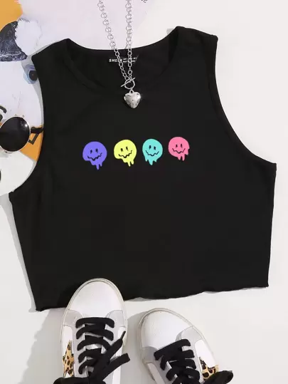 SHEIN Unity Cartoon Graphic Tank Top Graphic Tees Women Tops - Black - View 1