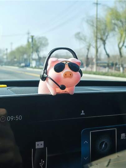 Cartoon Pig Car Pendant Rearview Mirror Decor - Pink - View 1