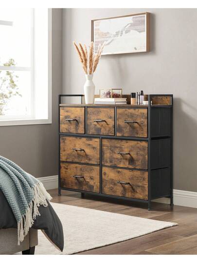 Chest Of Drawers, Bedroom Cabinet, 7 Fabric Drawers With Handles, Metal Frame, Rustic Brown And Ink Black - Chocolate Brown - View 8