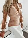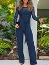 ChicMe Lace Panel Long Sleeve Tops Button Half V Neck Slim Fit Basic Casual Daily Wear