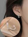 1pair White Camellia Rose & Simulated Faux Pearl Clip-On Earrings For Women