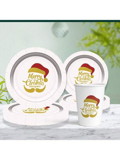 Christmas Decoration 60pcs/Set Christmas Party Disposable Tableware Set Including Paper Cups, Plates And Dessert Plates With Santa Claus Pattern. - Multicolor - View 1