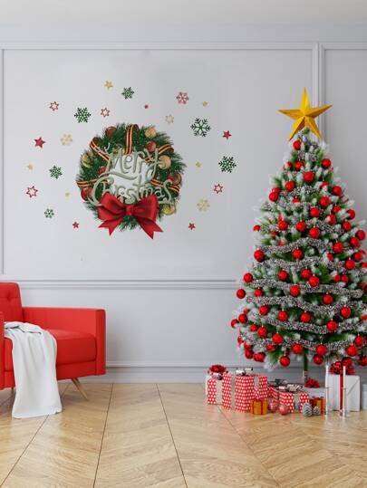 Christmas Wreath Print Wall Sticker - Multicolor - View 5