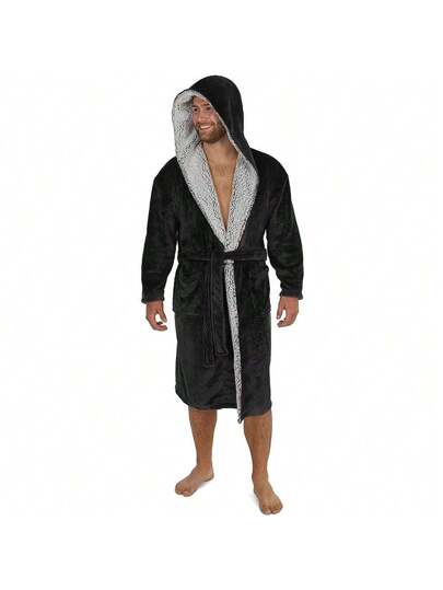 City Comfort Dressing Gown And Super Soft Hooded Fleece Robe Sizes M-2XL Warm Cosy Loungewear Nightwear - Black - View 1