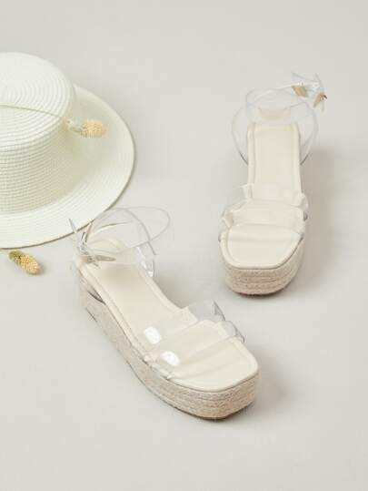 Clear Espadrille Flatform Sandals - Clear - View 1