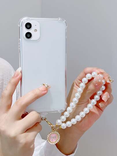 Clear Phone Case With Faux Pearl Beaded Lanyard - Clear - View 1