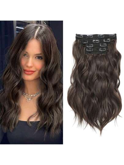 Clip In Hair Extension, Blonde Hair Extensions Invisible Lace Weft Synthetic Natural Soft 14 Inch Short Wavy Curly Hair Extensions For Women - Chocolate Brown - View 1