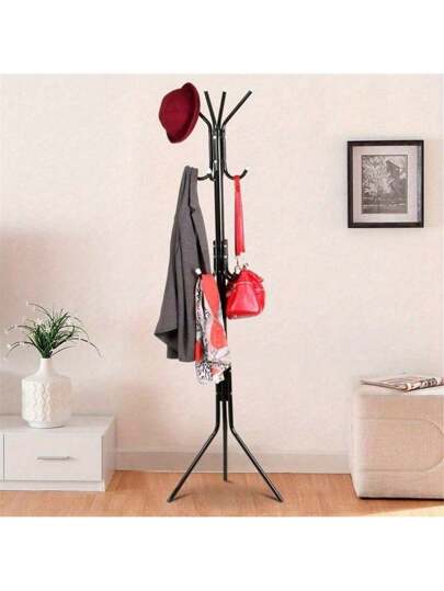 Clothes Stand 12 Hooks Coat Rack Stand 175cm For Jacket Rack Umbrella Clothes Holder, Floor Standing Rack Clothes Hanger Hooks Black Room Decor Home Decor Fall Decor Bedroom Decor - Black - View 1