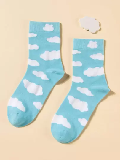 Cloud Print Crew Socks - Blue and White - View 1