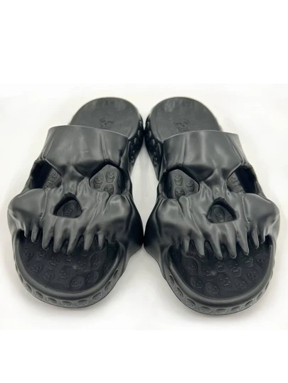 Cool Black Slide Shoes For Men, Skeleton Design EVA Slides - Black - View 1