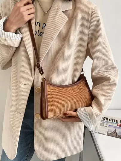Corduroy Crossbody Bag - Brown - View 1