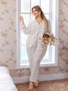 CottageSlumber Tulip Pattern Collar Splice Ruffle Trim Casual Cute Pajama Set Cozy And Elegant Details