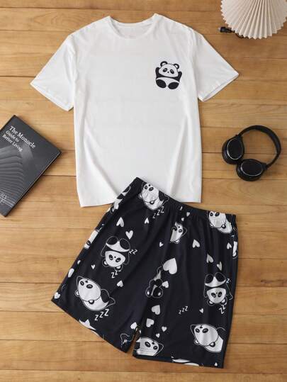 SHEIN Men's Cute Panda Print Pajama Set, Loungewear - Multicolor - View 1