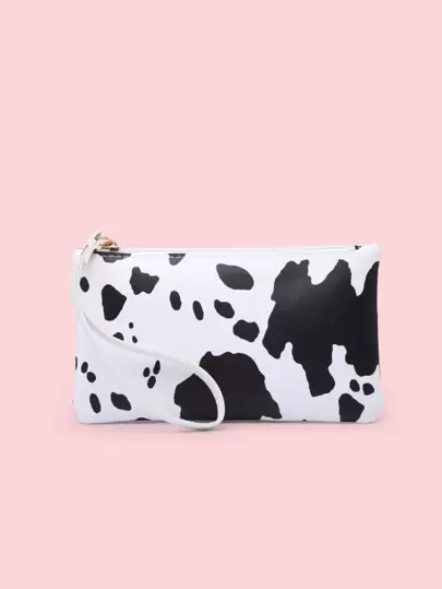 Cow Print Long Purse - Black and White - View 1