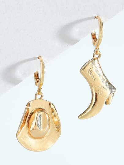 Cowboy Hat & Western Boot Mismatched Earrings - Yellow Gold - View 3
