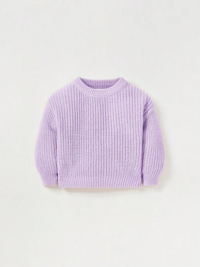Cozy Pixies Baby Girls Drop Shoulder Ribbed Knit Sweater - Mauve Purple - View 1