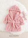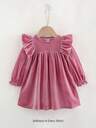 Cozy Pixies Baby Girl Solid Color Knitted Soft Round Neck Ruffle Hem Cinched Waist Long Sleeve Dress