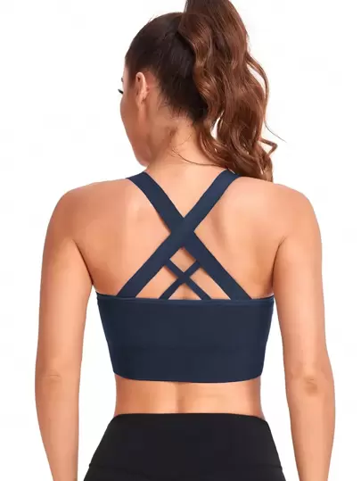 Crisscross Back Sports Bra - Navy Blue - View 5