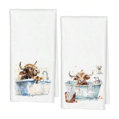 Crystal Bathtub Funny Cow Design Pattern Kitchen Towel Gift, Super Absorbent, Cartoon Design, Machine Washable Reusable Towel, Suitable For Home, Kitchen, Bathroom, Car, Window Cleaning - Soft Knitted Dish Towel - Multicolor - View 1