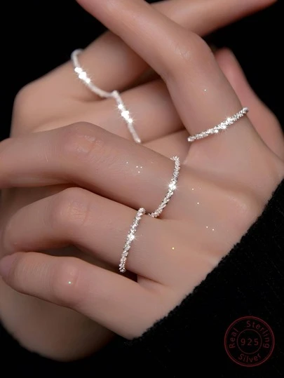 Cubic Zirconia Decor Sterling Silver Ring - Silver - View 9
