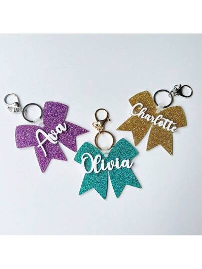 Custom Name Bow Keychain 4th Of July Accessories Bow Girls Backpack Name Tag, Name Charm, Backpack Tags - Glitter Bow Keychain - View 1