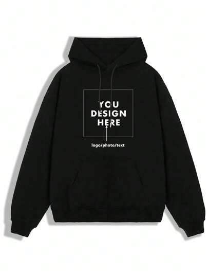 Customized Men Drawstring Hooded Long Sleeve Sweatshirt, Fall - Black - View 1