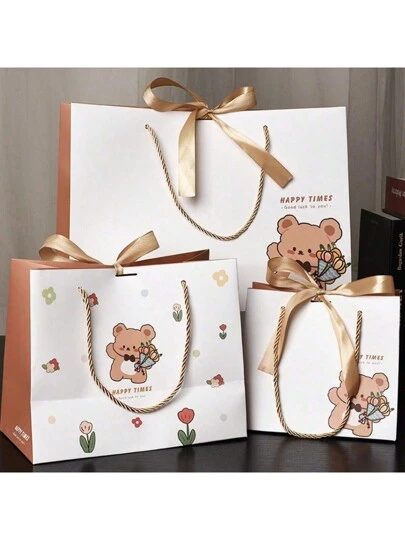 Cute Cartoon Bear Print Creative Handbag Gift Bag With Ribbon, Suitable For Festivals, Birthdays, Parties, Daily Gift Packaging Valentine's Day Packaging Bag Valentine's Day - Multicolor - View 1