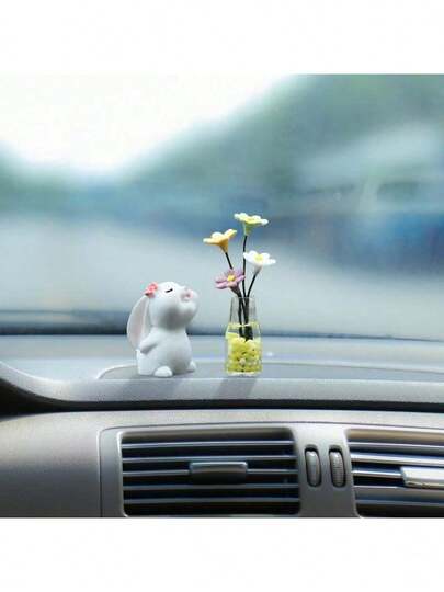 Cute Rabbit & Flower Car Dashboard Decor Accessories, Fun Car Interior Rabbit Daisy Decorations - White - View 1