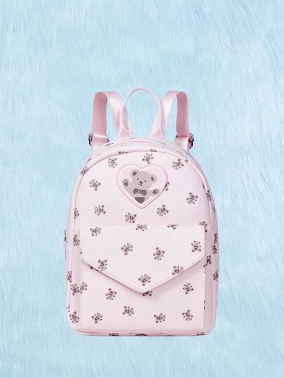 ROMWE Kawaii Cute Teddy Bear & Heart Shaped Pink Backpack - Baby Pink - View 1