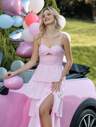 D&M Split Thigh Sequin Cami Dress Elegant Formal Evening Prom Wedding Guest Gown, For Graduation, Dinner Party Dress