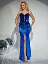 D&M Split Thigh Sequin Cami Dress Elegant Formal Evening Prom Wedding Guest Gown, For Graduation, Dinner Party Dress