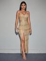 D&M Satin V-Neck Backless Side Slit Cami Dress, Suitable For Dates, Minimalist Fashion Casual Versatile Women Clothing.Thanksgiving .Christmas .New Year Holiday