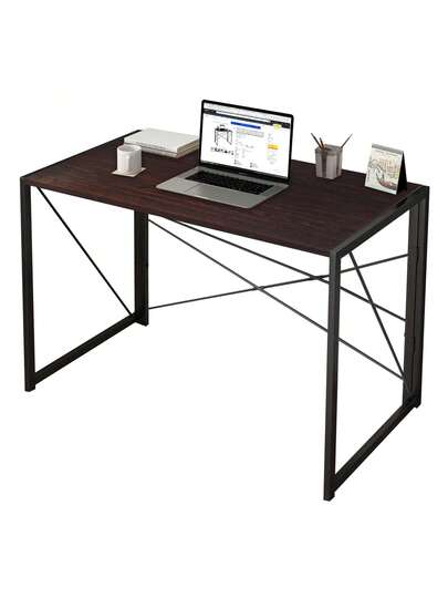 DAWOO Folding Computer Table, 100x50x75cm Folding Desk Home Office Laptop Desk For Small Spaces Modern Simple Style PC Table Coffee Table Writing Small Desk, Metal Frame - Bronze - View 1