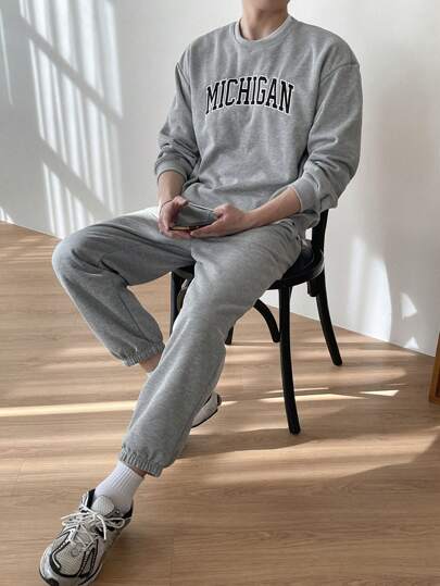DAZY Men Letter Graphic Drop Shoulder Sweatshirt & Joggers - Grey - View 1