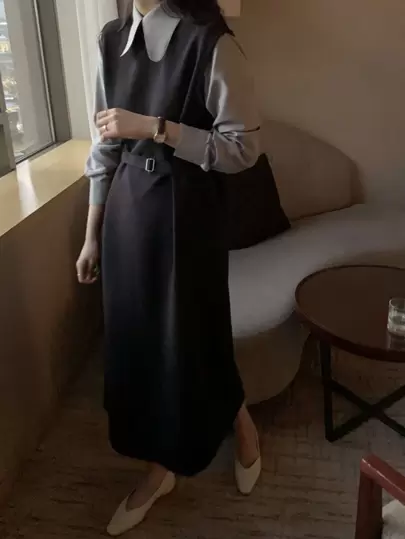 DAZY Solid Belted Tank Dress Without Shirt,Fall Clothes - Black - View 8