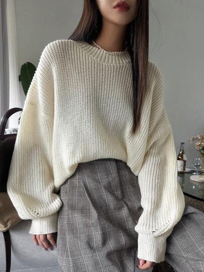 DAZY Solid Drop Shoulder Jumper - Beige - View 1