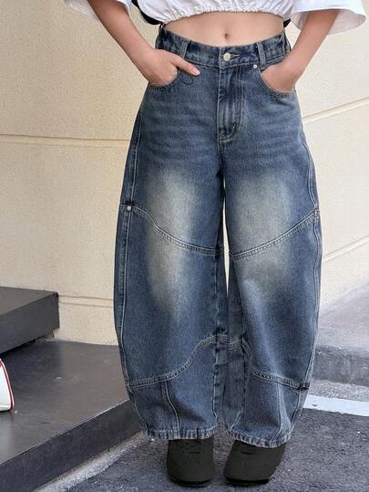 DAZY Tween Girls' Baggy Flared Loose Casual Jeans - Blue - View 1