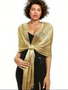 Golden Sparkling Metallic Shawl Without Round Buckle Elegant Lightweight Breathable Tassel Scarf Women's Party Banquet Dress Outside Shawl Bandana,Hair Band,Head Band Ideal For Dressing Up Your Look