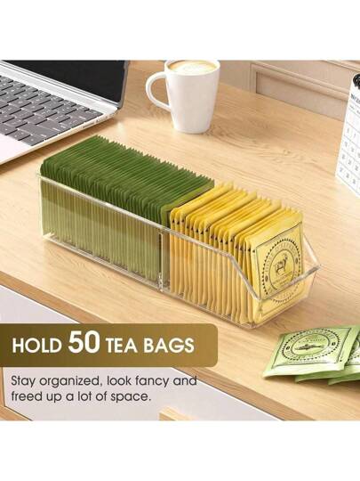 DEFINICE 1pc Tea Bag Organizer Tea Bag Storage Tea Bag Holder Tea Box Clear Storage Bins For Sugar Packet, Coffee, Condiment, Spice Pouches In Kitchen, Cabinet, Countertop, Pantry - Clear - View 1