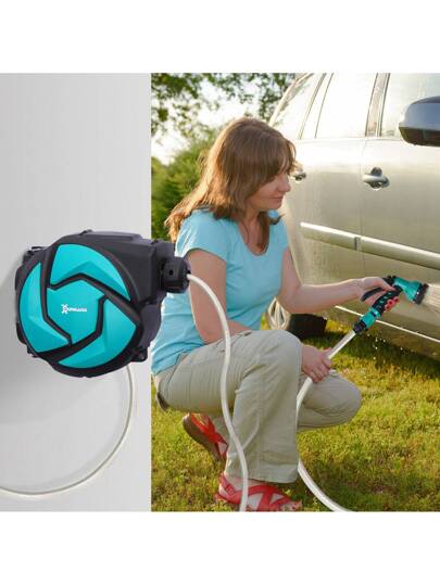 DURHAND 10m Garden Auto Hose Reel Wall Mounted Retractable 7 Patterns Spray Nozzle - Blue - View 8